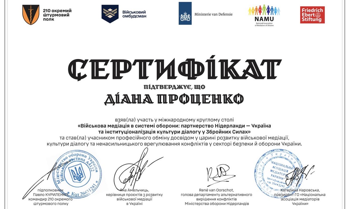 Діана Проценко взяла участь у роботі круглого столу, присвяченого питанням військової медіації